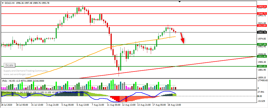تحققت اهداف الصعود المتوقعه خلال تداولات امس وتم الهبوط منها لمستويات 1976.00 حيث نتوقع استمرار الهبوط للزوج مع وجود زخم بيعي واضح والله تعالى اعلى واعلم  .