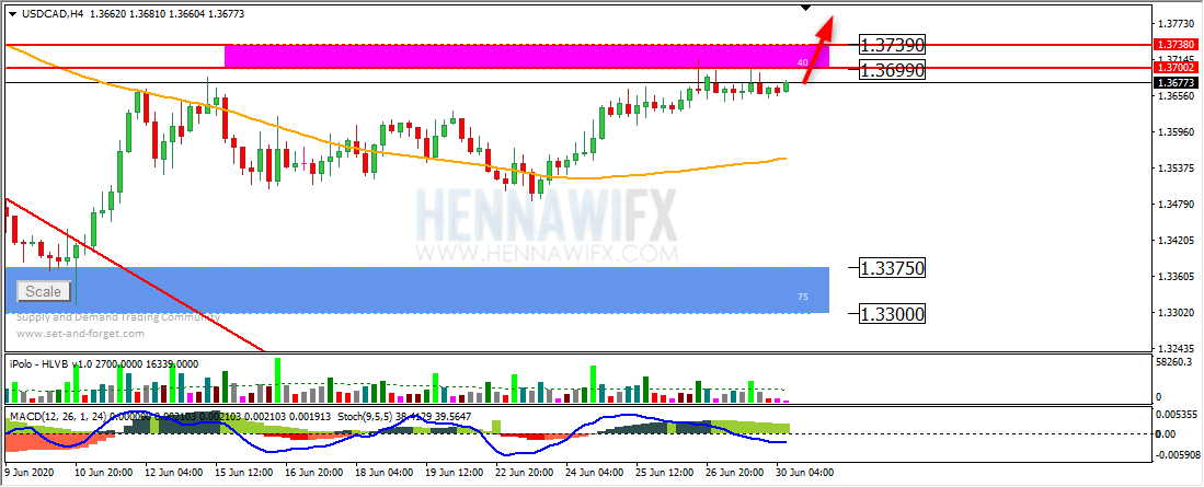 نعتقد ان الزوج وخلال تداولات اليوم سينك اختراق مستويات العرض حول 1.3740 نفضل انتظار اغلاقات اليوم لتتضح الصورة اكثر .