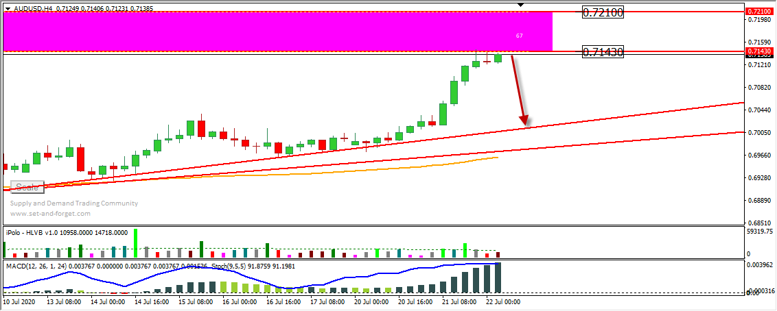 كما نلاحظ اتجاه هابط ووصول لمناطق عرض على فريم الاربع ساعات لن يتم الدخول شراء الا باشارات تاكيدية فقط .