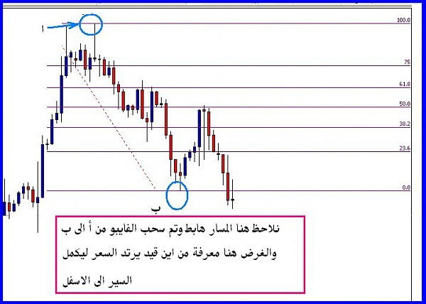 ارسم قناة صاعدة وارسم فيبو ناتشي مقلوب